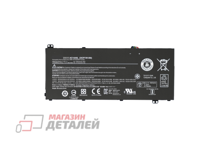 У нас вы можете купить аккумулятор AC14A8L для ноутбуке Acer Aspire VN7-571, VN7-571G, VN7-591, VN7-591G 11.55V 5360mAh Premium по цене 2 480 р. с возможностью заказа услуги по установке и ремонту. Оплатить покупку аккумулятора AC14A8L для ноутбука Acer Aspire VN7-571, VN7-571G, VN7-591, VN7-591G 11.55V 5360mAh Premium можно наличными, электронными деньгами, банковской картой, по банковскому счету, наложенным платежом или по безналичному расчету. Доставить товар возможно с помощью услуг нашего курьера по Москве, с помощью курьерской компании или по почте России. Кроме того, к вашим услугам пункт самовывоза в Москве и России