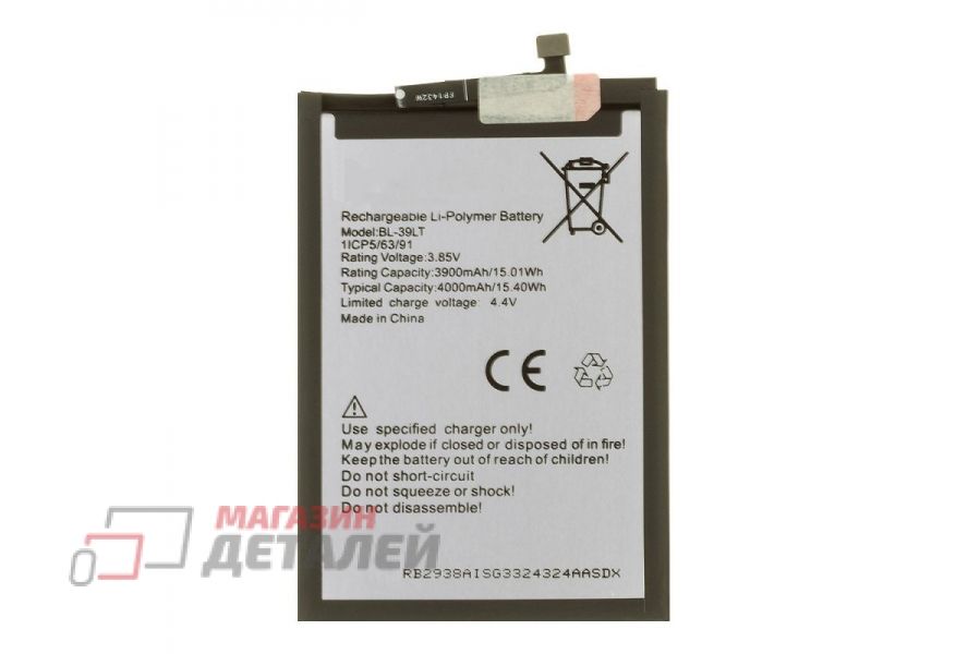 Аккумулятор BL-39LT для Tecno Camon 12, Spark 4 3.85V 4000mAh 100% Filling Capacity