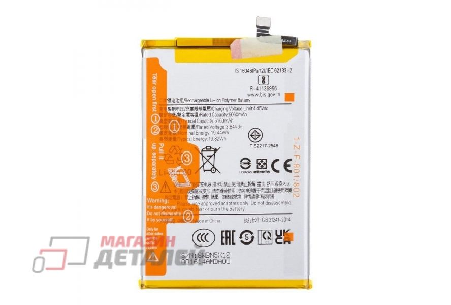 Аккумулятор BN5X для Xiaomi Redmi 14C, Poco C75 3.84V 5160mAh 100% Filling Capacity