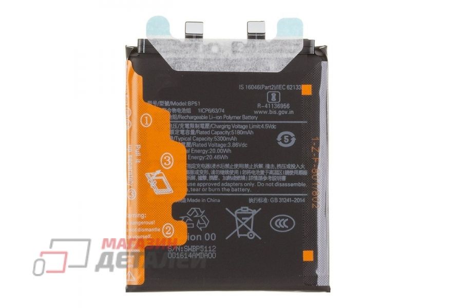 Аккумулятор BP51 для Xiaomi 14 Ultra 3.86V 5300mAh 100% Filling Capacity