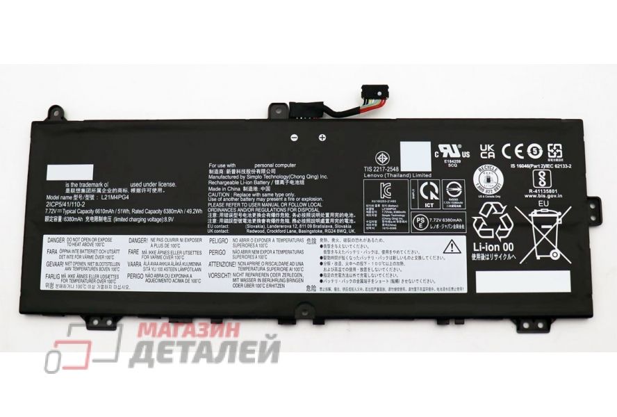 Аккумулятор L21M4PG4 для ноутбука Lenovo Flex 5 Chrome 14IAU7 7.72V 51Wh
