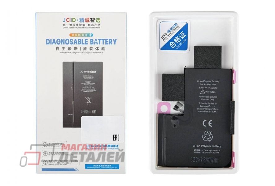 У нас вы можете купить аккумуляторную батарею (аккумулятор) JCID для iPhone 13 Pro Max 4790 mAh (повышенный емкость) по цене 2 260 р. с возможностью заказа услуги по установке и ремонту. Оплатить покупку аккумуляторной батареи (аккумулятор) JCID для iPhone 13 Pro Max 4790 mAh (повышенной емкость) можно наличными, электронными деньгами, банковской картой, по банковскому счету, наложенным платежом или по безналичному расчету. Доставить товар возможно с помощью услуг нашего курьера по Москве, с помощью курьерской компании или по почте России. Кроме того, к вашим услугам пункт самовывоза в Москве и России