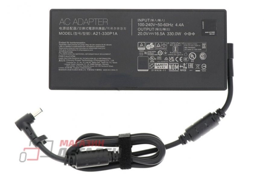 Блок питания (сетевой адаптер) для ноутбуков Asus 20V 16.5A 330W 6.0x3.7 мм с иглой, черный с сетевым кабелем