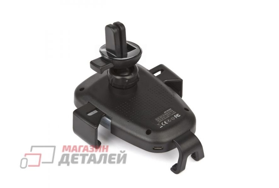 Особенности функциональный автомобильный держатель для смартфона, включающий функции беспроводной зарядки ( дальность передачи: 5-7 мм ), крепится на торпедо с помощью присоски или на диффузор увоздуховода с помощью дополнительной насадки, удерживание с помощью раздвижного механизма на 3 стороны, максимальная ширина от 4 - 6 дюймов, угол вращения: 360°, мощность беспроводного зарядного устройства 10W DC 5V / 9V - 1. 5A, световой индикатор