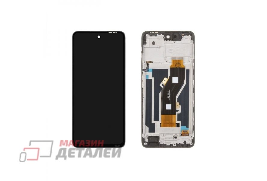 Дисплей (экран) в сборе с тачскрином для Tecno Spark 20 (KJ5) черный с рамкой (Premium LCD)