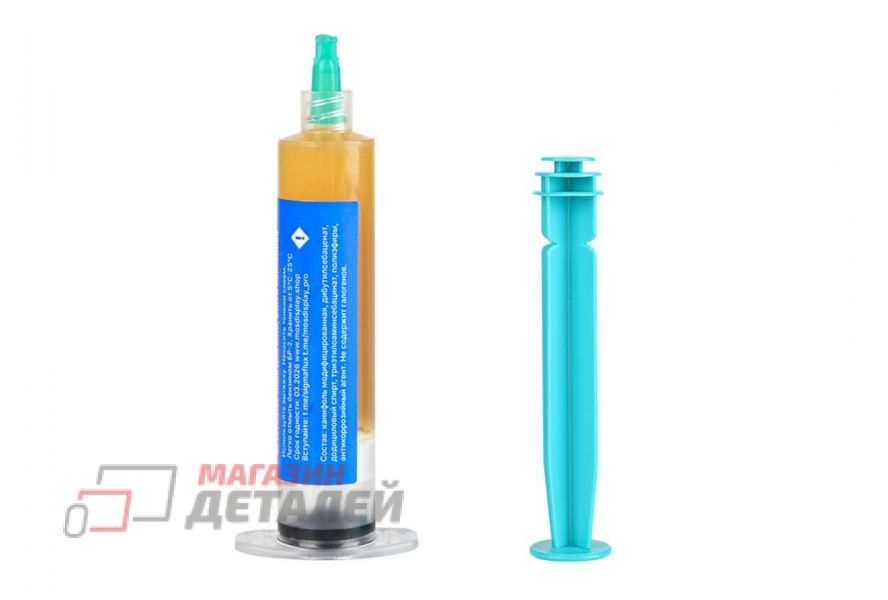 Полугелевая формула легко наносится кистью хорошо держится под феном, не стекая слишком быстро. Благодаря жидкой консистенции флюс не «схватывается» комками и обеспечивает ровное распределение по площадкам.