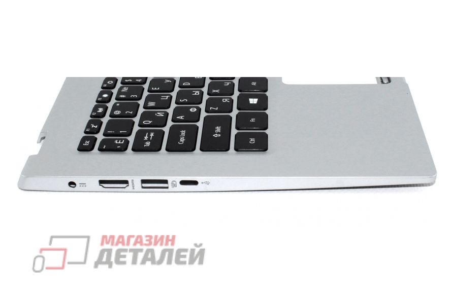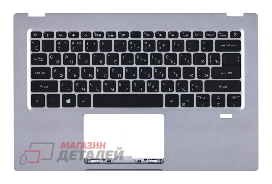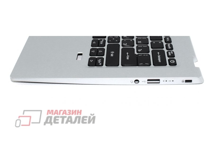 Клавиатура (топ-панель) для ноутбука Acer Swift SF114-34 черная с серебристым топкейсом (с разбора)