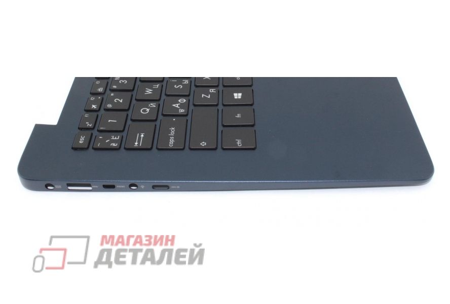Клавиатура (топ-панель) для ноутбука Asus UX430U черная с темно-синим топкейсом
