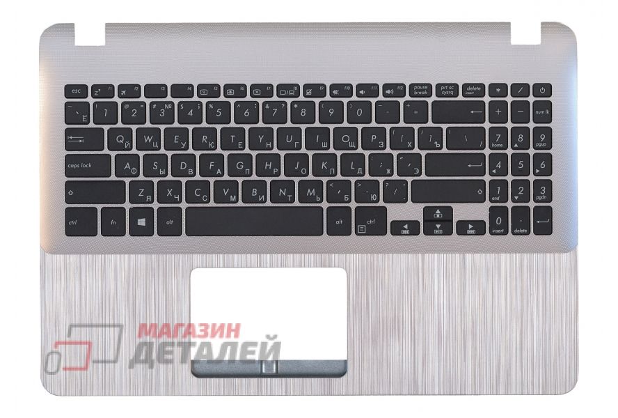 Клавиатура (топ-панель) для ноутбука Asus X507MA черная с серебристым топкейсом