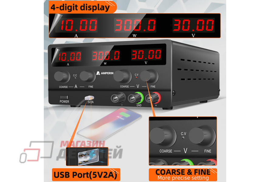 Лабораторный блок питания Amperin AI-H3010 30V, 10A Лабораторный блок питания Amperin AI-H3010 30V, 10A Лабораторный блок питания Amperin AI-H3010 30V, 10A