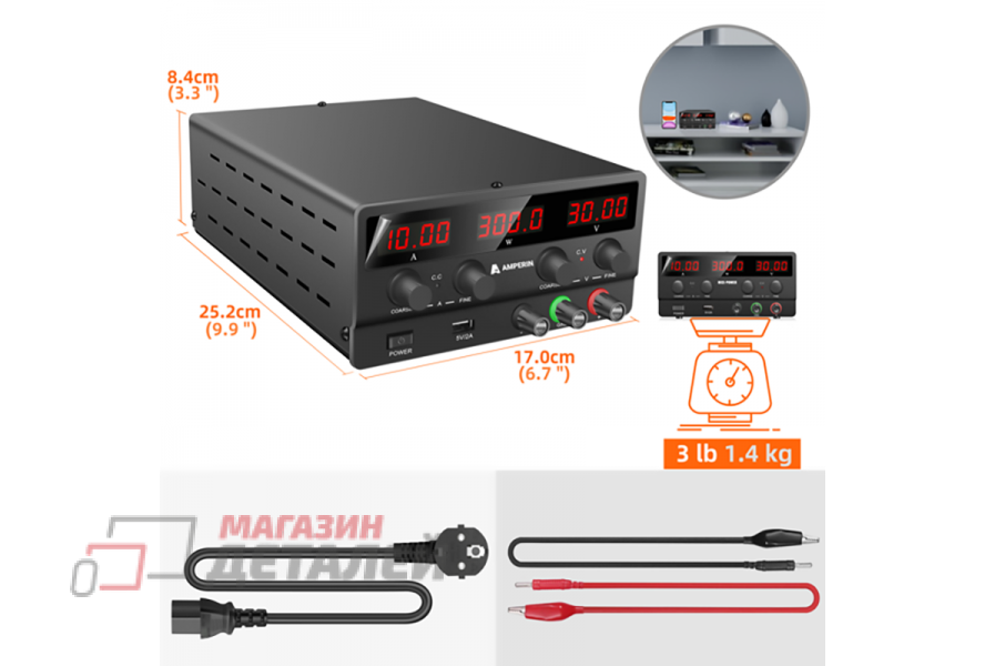 У нас вы можете купить лабораторную блок питания Amperin AI-H3010 30V, 10A по цене 5 460 р. с возможностью заказа услуги по установке и ремонту. Оплатить покупку лабораторной блока питания Amperin AI-H3010 30V, 10A можно наличными, электронными деньгами, банковской картой, по банковскому счету, наложенным платежом или по безналичному расчету. Доставить товар возможно с помощью услуг нашего курьера по Москве, с помощью курьерской компании или по почте России. Кроме того, к вашим услугам пункт самовывоза в Москве и России