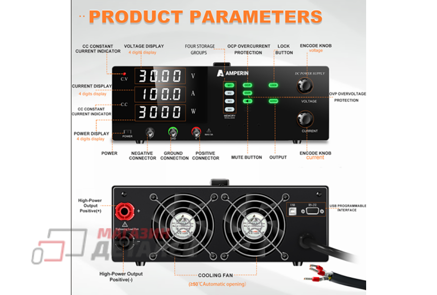 Лабораторный блок питания Amperin AI-MWS30010RS 300V, 10A Лабораторный блок питания Amperin AI-MWS30010RS 300V, 10A Лабораторный блок питания Amperin AI-MWS30010RS 300V, 10A