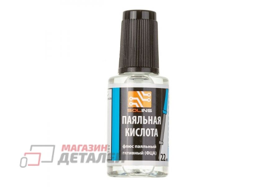 Паяльная кислота Solins (ФЦА) флюс паяльный активный, с кисточкой (22 мл)