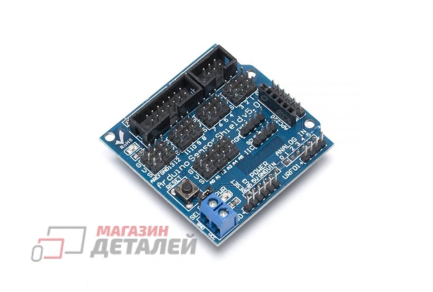 Плата расширения для подключения дополнительных датчиков, поддерживает не только подключение через аналоговые и цифровые порты, подходит для подключения датчиков bluetooth, модуля SD карт, APC 220 RF модулей, RB URF v1.1 ультразвуковых датчиков и так далее.