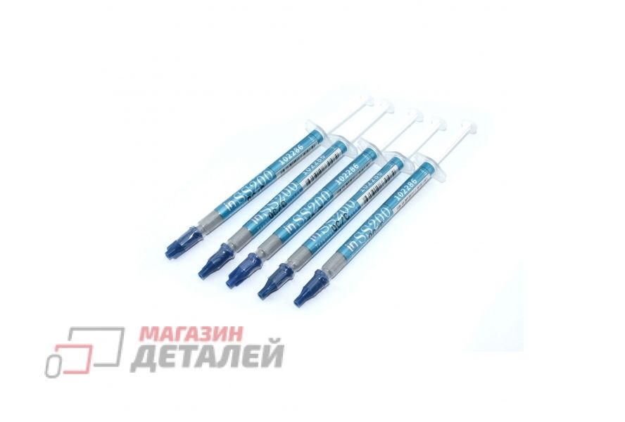 Усовершенствованная версия термопасты SS100. Внесены изменения в состав для повышения теплопроводности. Коэффициент теплопроводности 9.8 Вт/(мК), идеальная консистенция для любых систем охлаждения (почти жидкая), Термопаста с фазовым переходом. Для комфортного нанесения термпасту лучше подогреть до 50 градусов, термопаста перейдёт в жидкое состояние. Реальный срок эффективной работы до трёх лет максимальная эффективность до полутора лет.