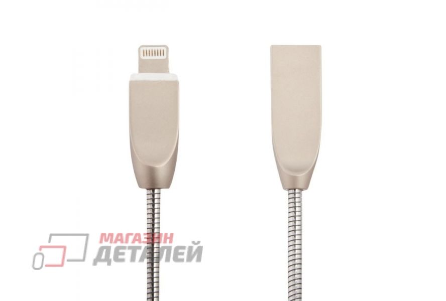 USB кабель "LP" для Apple 8 pin "Панцирь" в металлической оплетке (серебряный/коробка)