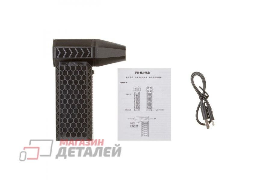 Комплектация: Воздуходувка турбовентилятор. кабель зарядки Type-C, сумка для хранения, инструкция, упаковка.